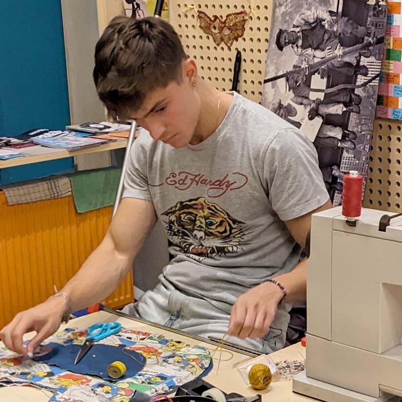 Na delavnici se boš naučil_a sešiti oblačilo, torbo, lutko, sliko ali prt ter ga okrasiti s svojo sliko v tehniki sitotiska.